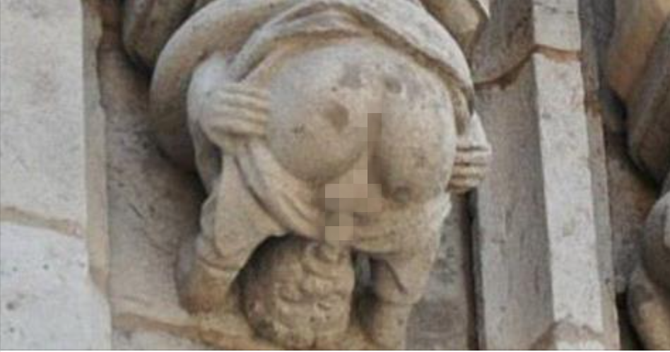 Но те, кто посетит храм Святого Михаила в Мере, увидят спрятанную в углу каменную фигуру слюнявого демона, жадно вылизывающего свои тестикулы.