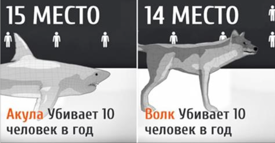 Все знают, как опасны акулы. Люди боятся этих зубастых созданий, как огня. Но можете ли вы сказать с уверенностью, какие еще животные опасны для человека? Ответ вас наверняка удивит, поверьте. Представляем рейтинг смертельно опасных животных, на счету которых множество человеческих смертей, начиная с самых “безобидных”, и количество убиваемых ими людей в год.