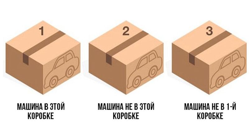 Перед вами 3 коробки, в одной из них — автомобиль. Он будет ваш, если вы отгадаете, где он, исходя из имеющихся условий.