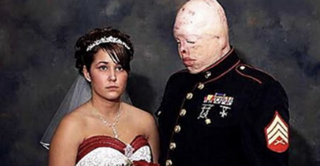 Тай Зигель и Рене Кляйн уговаривались пожениться еще тогда, когда лицо жениха еще было нормальным. Всё изменилось после службы в Ираке, где парень оказался рядом со взрывом смертника. Проведя 50 операций, врачи спасли Таю жизнь.