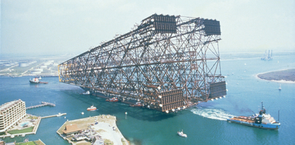 Голубой Марлин, тяжелейший корабль движется к нефтяной вышке.