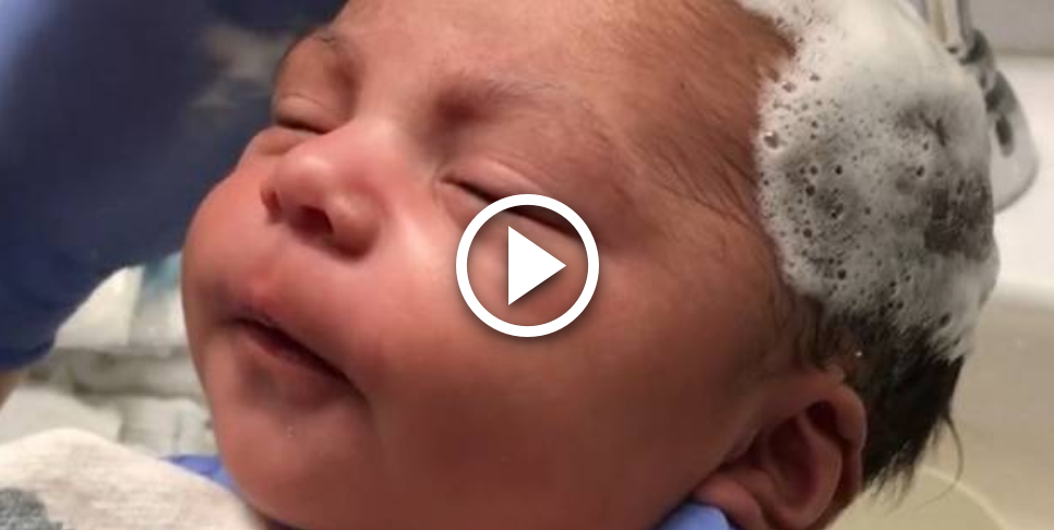 Ребенок получает истинное наслаждение от происходящего, но когда ее головы касается щетка, она меняется в лице. Вначале на ее мордашке читается непонимание и даже раздражение, но несколько секунд и она впадает в настоящую нирвану!