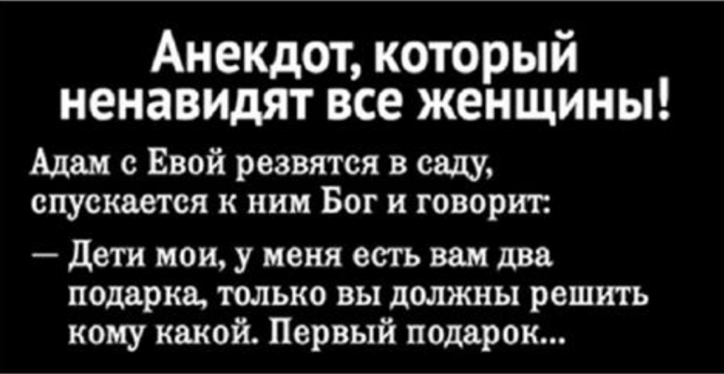 — Дети мои, у меня есть вам два подарка, только вы должны решить кому какой. Первый подарок — писать стоя…