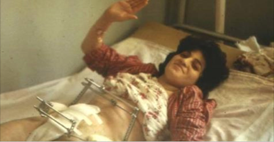 Среди пациентов Казбека была молодая женщина по имени Аида Саакян. Во время землетрясения она была буквально похоронена заживо под обломками. Аида сорвала голос, зовя на помощь. Когда ее наконец-то спасли, на тело женщины было страшно смотреть, оно полностью было синим от различных травм.