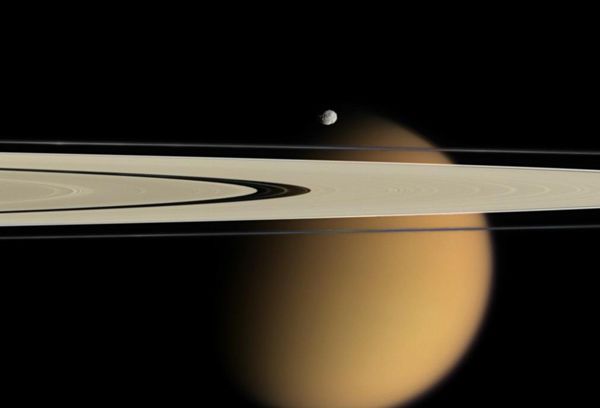 Титан за кольцами Сатурна ©NASA Среди спутников планет в солнечной системе попадаются самые...