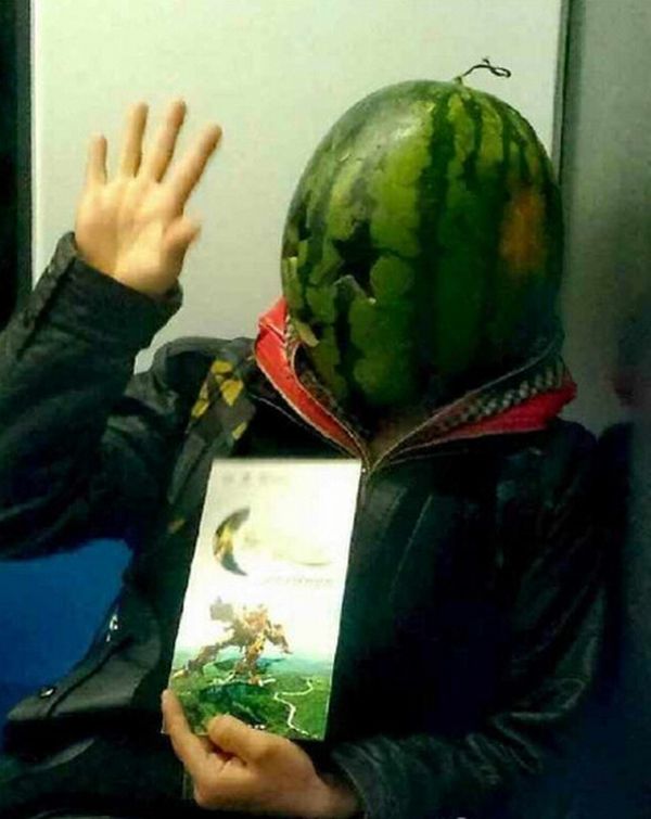В китайском метро появился неординарный персонаж. В последнее время человек-арбуз появлялся в поезде...