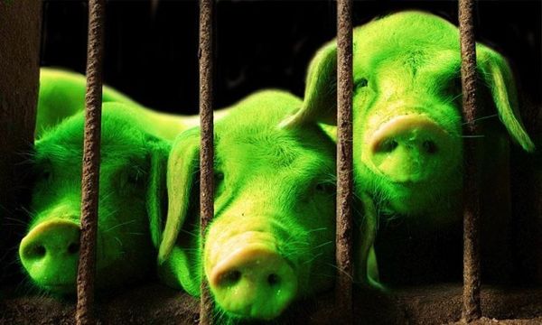 Перед Новым годом ученые из Китая создали зеленоватых поросят, которые излучают зеленый свет...