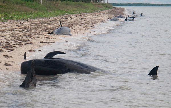 Десять калдеронских дельфинов гриндов погибли, выбросившись на берег в Национальном парке Эверглейдс, штат...
