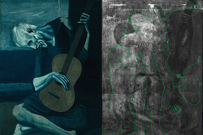 Старый гитарист. Пикассо. Оказывается, под картинами некоторых известных художников скрываются другие изображения. Иногда,...
