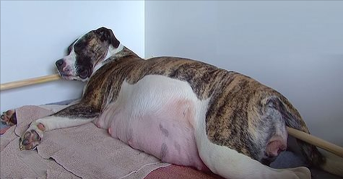 Для стаффордширского бультерьера, трехлетней Дивы, первая беременность выдалась весьма непростой. Хозяева только диву...
