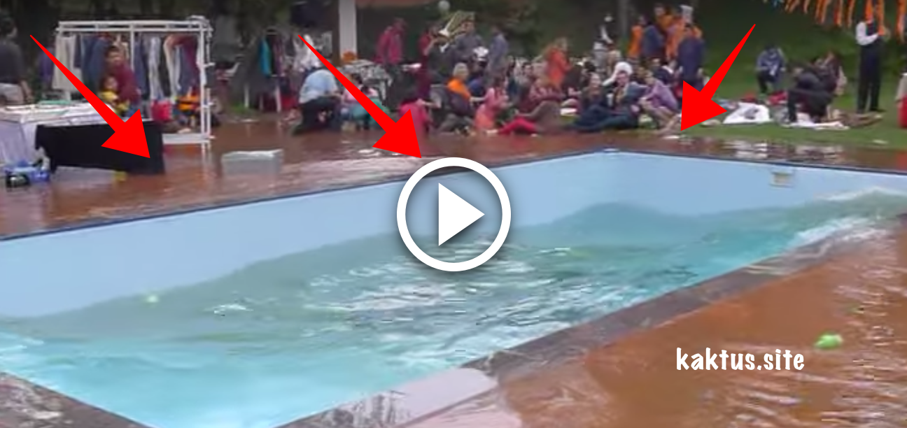 Семья отдыхала у бассейна, когда началось землетрясение. Теперь внимание на бассейн..