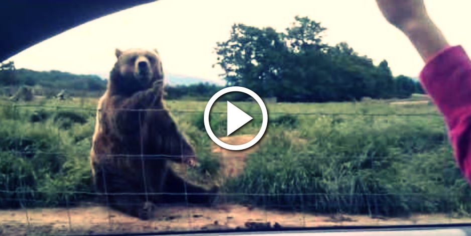 Женщина из машины машет рукой медведю – посмотрите на его неожиданный ответ, который не заставил себя долго ждать …