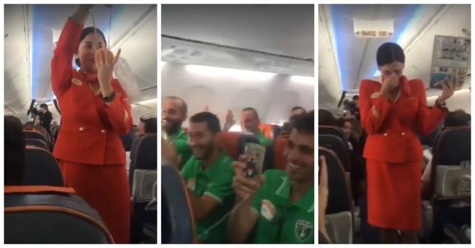Футбольные болельщики рассмешили одну из стюардесс, обслуживавших рейс. В то время, как девушка...