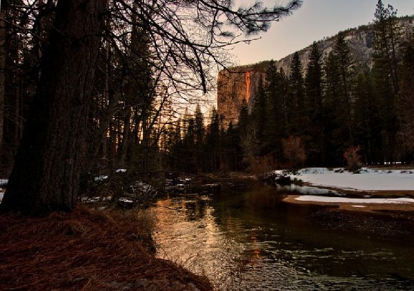 Хвощевидный огненный водопад в Национальном парке Йосемити в Калифорнии, является удивительным зрелищем. Это...