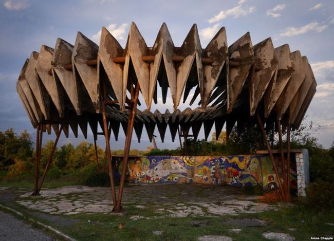 Здание парламента, частично разрушенное в 1992-1993 годах, во время сражения грузинских и абхазских...