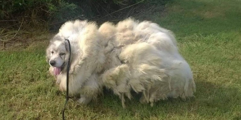 В грязи за дверью лежал совершенно заросший пес. Но срезав 16кг шерсти, люди не поверили своим глазам
