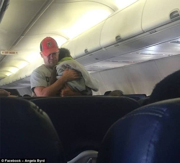 Случайная попутчица сделала фото молодого человека с чужим ребенком на руках в самолете,...