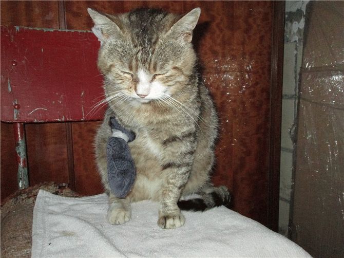 Два года назад это было. Пришел к подъезду, где подкармливали, кот. Пришел, лапку...