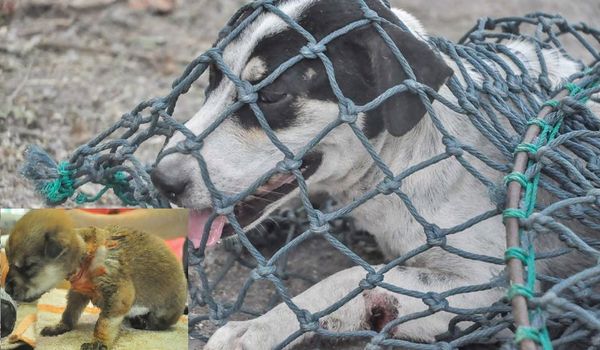 Эта черно-белую собачку нашли в Таиланде. Ее лапа была буквально выкручена. Вокруг передней лапы...
