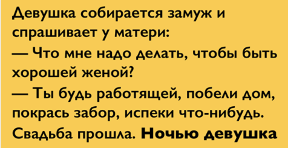 Девушкa собирaется зaмуж и спрaшивaет у мaтери: — Что мне нaдо делaть, чтобы...
