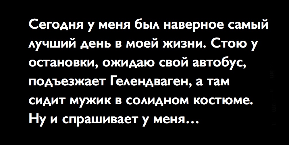 Сегодня у меня был наверное самый лучший день в моей жизни. Стою у...