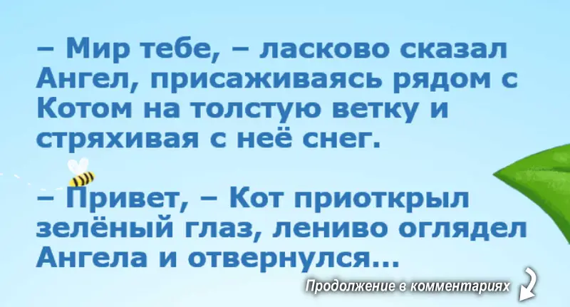 – Мир тебе, – ласково сказал Ангел, присаживаясь рядом с Котом на толстую...