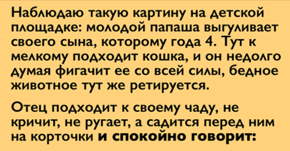Спостерігав таку картину на дитячому майданчику: молодий тато вигулює свого сина, якому 4 роки