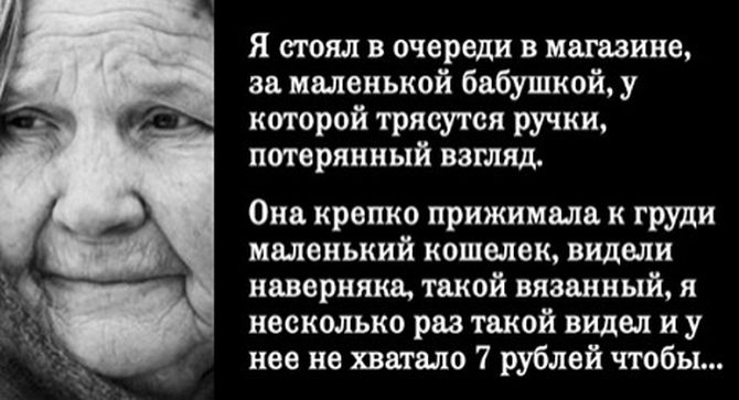 Я стоял в очереди в магазине, за маленькой бабушкой, у которой трясутся ручки,...