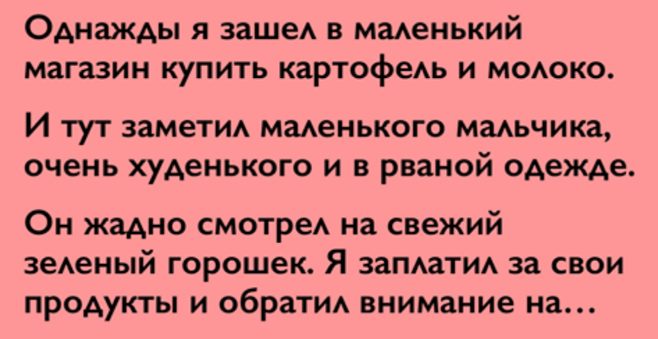 Однажды я зашел в маленький продуктовый магазинчик купить картофель и молоко. И тут...