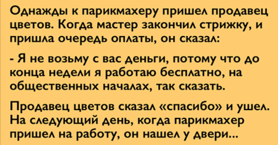 Однажды к парикмахеру пришел продавец цветов. Когда мастер закончил стрижку, и пришла очередь...