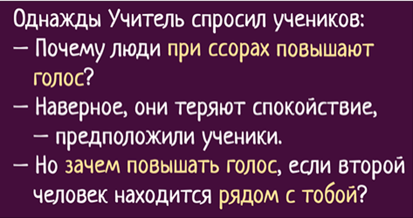 Прекрасная и мудрая притча Однажды Учитель спросил учеников: – Почему люди при ссорах...