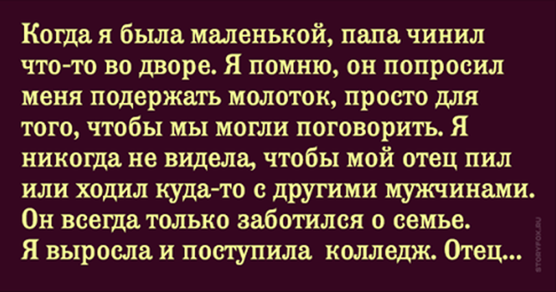 Цените своих близких.Когда я была маленькой, папа чинил что-то во дворе. Я помню,...