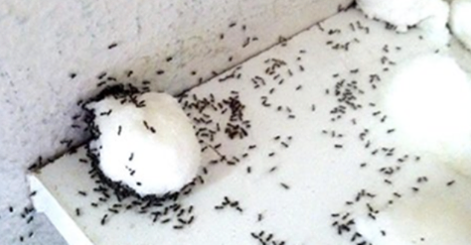 Муравьи роятся вокруг этого ватного тампона. Спустя несколько секунд происходит кое-что странное!