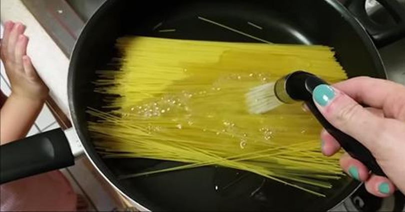 Если вы решили приготовить на ужин спагетти, попробуйте этот трюк. Вместо кастрюли возьмите сковороду, положите спагетти на дно и залейте холодной водой так, чтобы она полностью покрывала спагетти. Если вовремя не помешать макароны в горячей воде, они слипнутся. Но в холодной воде такой проблемы можно избежать.