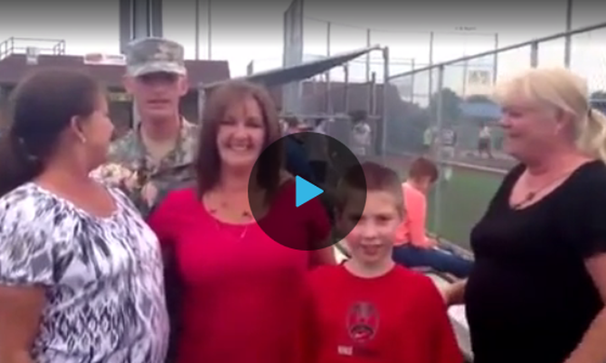 Однажды одна американская семья решила сделать фото на память неподалеку от спортивной площадки. Когда фотограф уже хотел сделать кадр, вдруг оказалось, что позади женщины в розовой футболке кто-то стоит. Обернувшись, она увидела перед собой своего сына в военной форме и с букетом цветов.