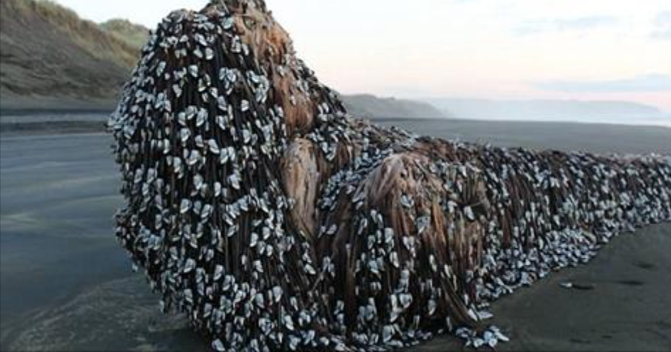 Жители Окленда (Новая Зеландия) после ноябрьского землетрясения обнаружили огромное нечто, выброшенное на берег океана. «Оно» было увешано водорослями и моллюсками, напоминая собой одновременно маорийские судна, обломки инопланетного корабля или даже какого-то морского гада из фильма про динозавров…