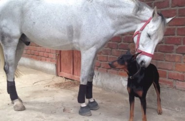 Доберманы — это, бесспорно, большие и сильные собаки. Но они также способны проявлять ласку и выражать нежность. Например, герои сегодняшнего ролика уже снискали славу в Сети. Дружба этого добермана с лошадью поражает всех вокруг.