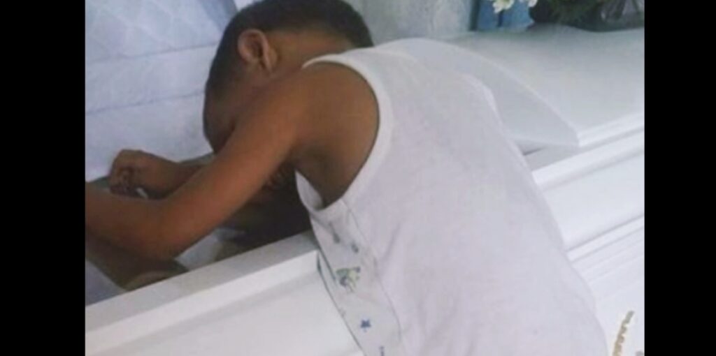 Що ви скажете цьому маленькому хлопчику, який питає: «Чому мама не спить більше поряд зі мною? Це несамовито…» — вона пише на Facebook. “Він сам присунув стілець і піднявся на труну, щоб обійнятися зі своєю мамою востаннє.”