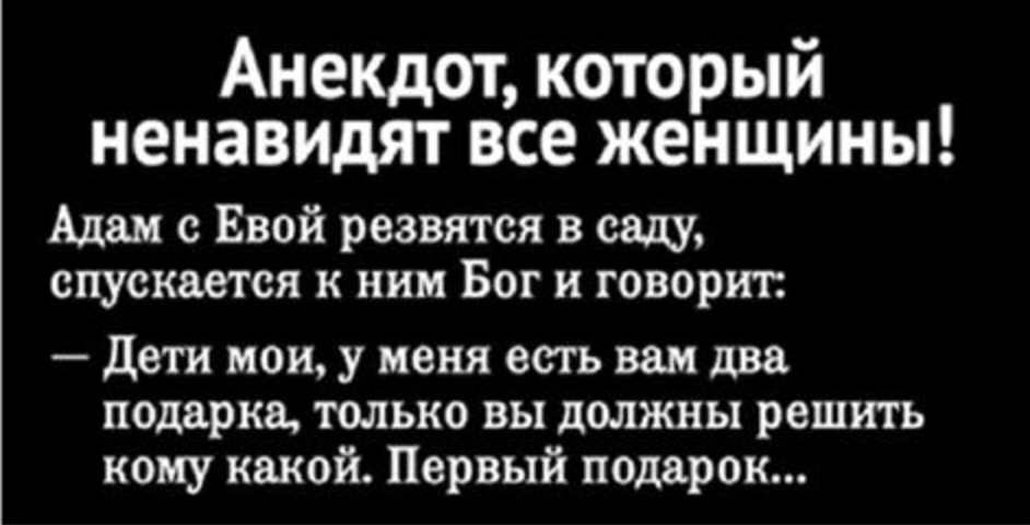 — Дети мои, у меня есть вам два подарка, только вы должны решить кому какой. Первый подарок — писать стоя…