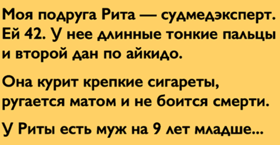 Моя подруга Рита — судмедэксперт. Ей 42.