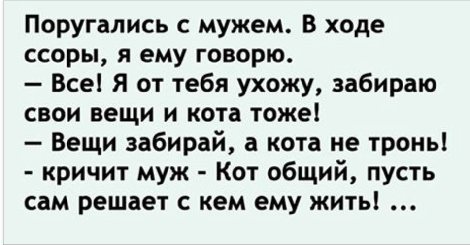 — Что это значит? – удивился муж – Чей кот в итоге?