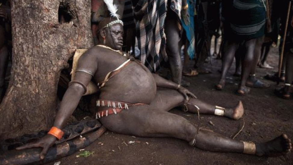 Жизнь различных племён в Эфиопии сытой назвать сложно, но глядя на отдельных представителей племени боди, невольно посещает мысль, а не бегают ли они на обеды в Макдональдс. И если мужчины из всех остальных эфиопских племён – это поджарые атлеты с ярко выраженной талией и мощными мускулами, то мужчины боди – этакие дородные мачо с огромными животами. Именно полных мужчин представители этого племени считают олицетворением достатка и здоровья.