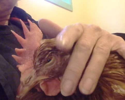 Чтобы уменьшить боль курочки, хозяйка иногда берет курочку на руки и гладит как кошку.