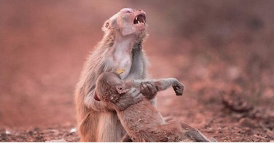31-летнему Аванашу Лодхи, который живет в Индии, удалось заснять удивительный момент. На фотографии мы видим, как обезьяна горько плачет, обнимая безжизненное тело своего ребенка.