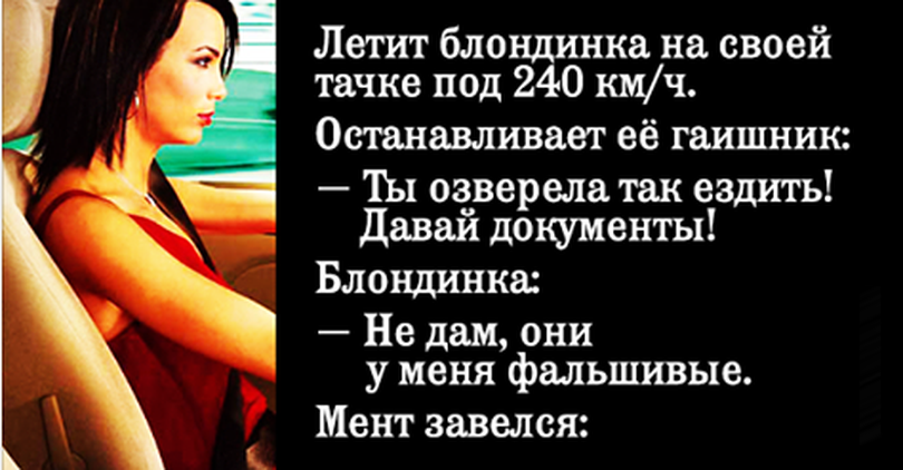 — Да вы больше слушайте этого козла, он вам сейчас еще скажет, что я 240 км/час ехала.