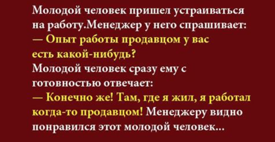 — Опыт работы продавцом у вас есть какой-нибудь?