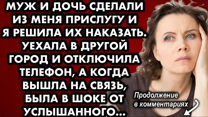 Муж и дочь сделали из меня прислугу и я решила их наказать FA 2 года назад Муж и дочь сделали из меня прислугу и я решила их наказать. Уехала в другой город, отключила телефон …