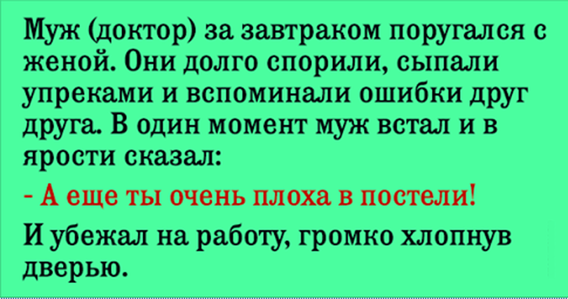 Жена ответила только на десятый раз. Раздраженный муж говорит: