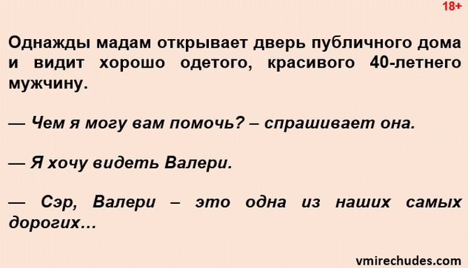 На следующий день этот же мужчина появляется там снова, еще настойчивей требуя Валери. Мадам была в шоке, потому что никто не приходил к этой девушке 2 ночи подряд – слишком дорого. Но мужчина снова заплатил 5000$ и поднялся с девушкой в ее комнату.