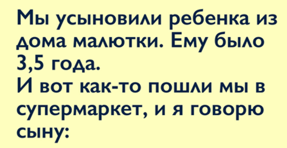 В 2009 году усыновили ребенка из дома малютки. Ему было 3,5 года. Так как там не дают много сладкого, ребенок не знал вкуса конфет. И вот мы в супермаркете, и я говорю сыну: «Вот тебе корзинка — бери что хочешь. Можешь положить все-все-все. Куплю что скажешь».
